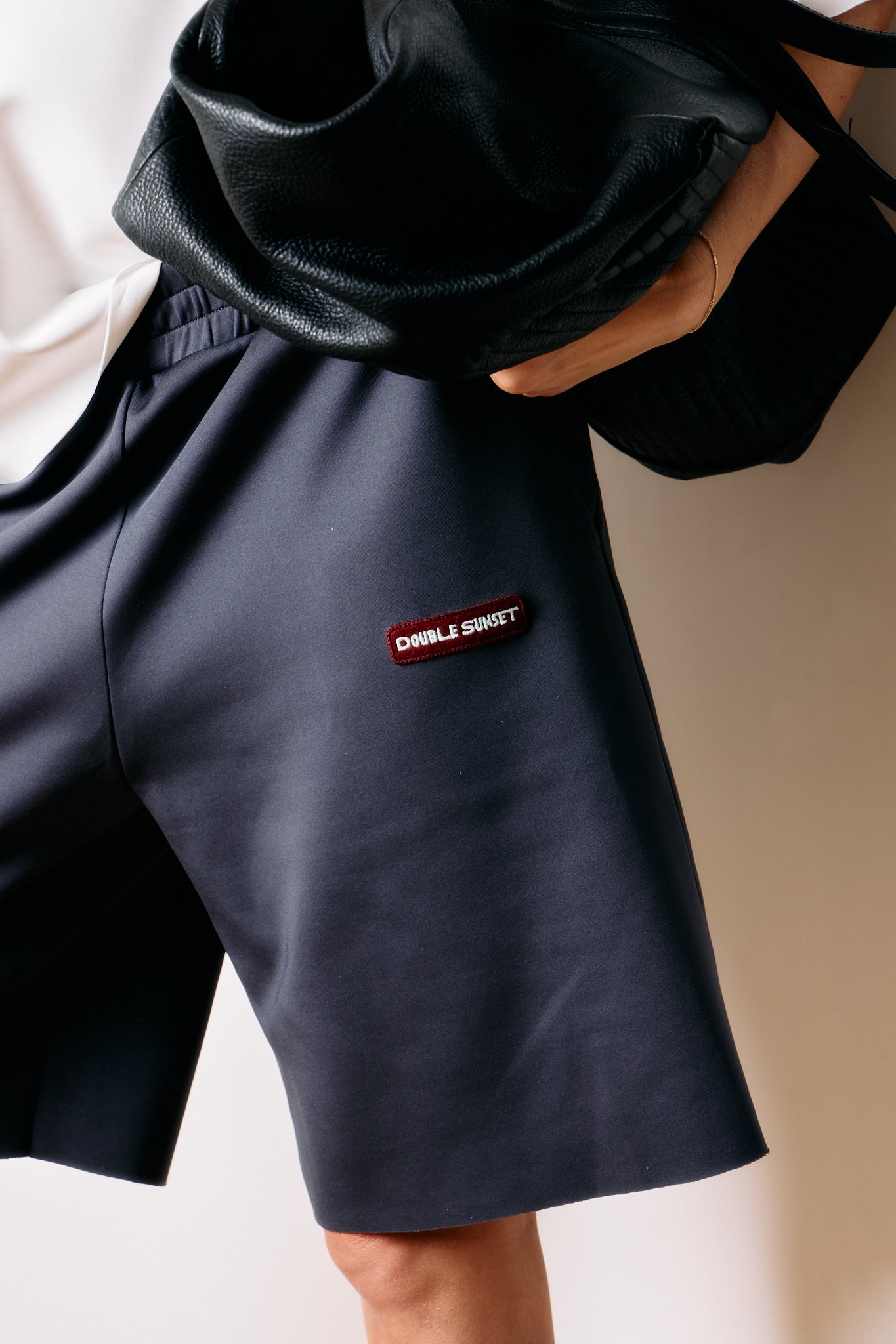 A Bermuda short with a loose, cool fit. It features a patch with our double sunset logo.